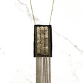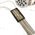 This is a unique necklace with metal sequins and chain fringe. The back side of the necklace is real lambskin.