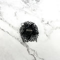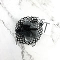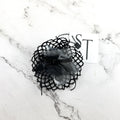 Materials: faux leather, mesh, netting, sequins trim, flat brooch pin back