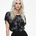 Effortlessly stylish and soft to the touch, the Black Gray Tie Dye Dolman Top brings modern flair to any wardrobe. Its semi-sheer fabric and relaxed silhouette make it perfect for layering or wearing alone.