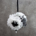 This is a beautiful one of a kind glass ball ornament with a raw edge floral applique and Swarovski crystals.