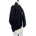 Black Faux Shearling Cocoon Open Sweater Jacket