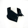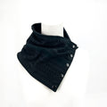 This black lace snap cowl brings structure and texture into sharp focus. An understated statement with undeniable presence.