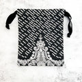 Black and Cream Floral Jacquard Knit Drawstring Bag