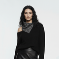 The Black and White Milior Snap Cowl is a versatile accessory designed for both style and function. Adjustable snaps allow you to wear it snugly or draped loosely for a relaxed look. Made from 100% cotton with a soft moleskin lining, it offers comfort and structure, while the black-and-white woven pattern adds a contemporary graphic accent to any outfit.