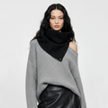 This is a beautiful oversized scarflette cowl piece. Depending on how many snaps you use, it can change the look of the piece. Have fun with it!