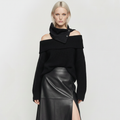 This is a versatile scarflette cowl piece. Depending on how many snaps you use, it can change the look of the piece. Have fun with it!