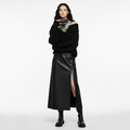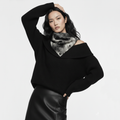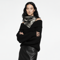 This is a versatile scarflette cowl piece. Depending on how many snaps you use, it can change the look of the piece. Have fun with it!