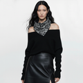 Cream and Black Floral Wool Snap Cowl
