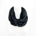 This metallic black infinity scarf blends soft Lurex knit with a super-soft jersey lining for both comfort and visual impact. The subtle metallic shimmer adds dimension and refined shine without overpowering an outfit. Its continuous infinity design allows versatile styling, from snug wraps to relaxed drapes. Lightweight yet polished, it’s a considered accessory that elevates casual, work, and evening looks while traveling or wearing daily.