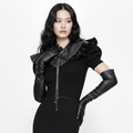 Inspired by Victorian capelets, this Snake Skin Print Wool and Silk Neck Collar combines dramatic flair with refined elegance. Crafted from 100% wool, silk organza, and real lambskin leather, with silk charmeuse and polyester pique accents, it offers luxurious texture and a sculptural silhouette.