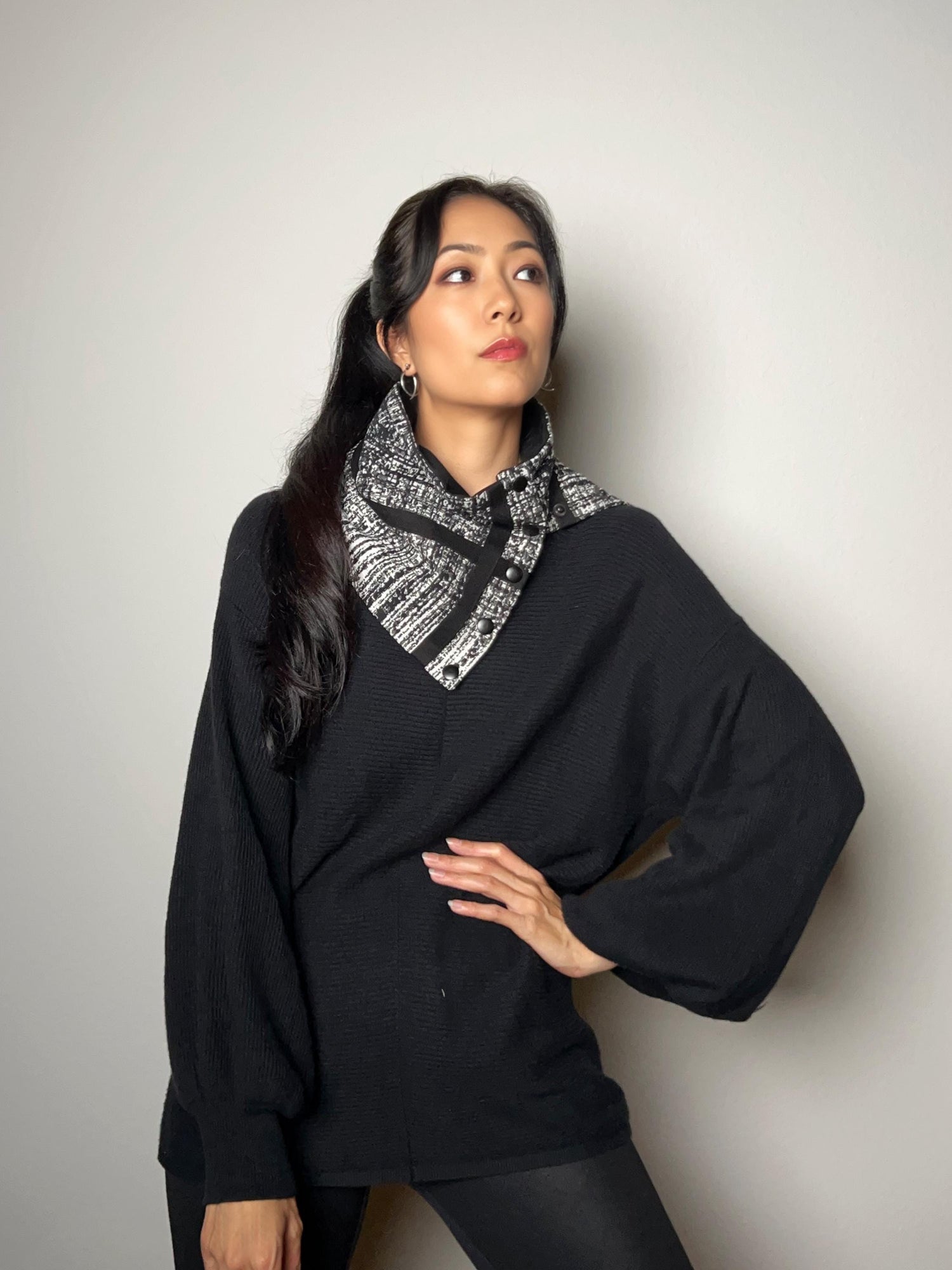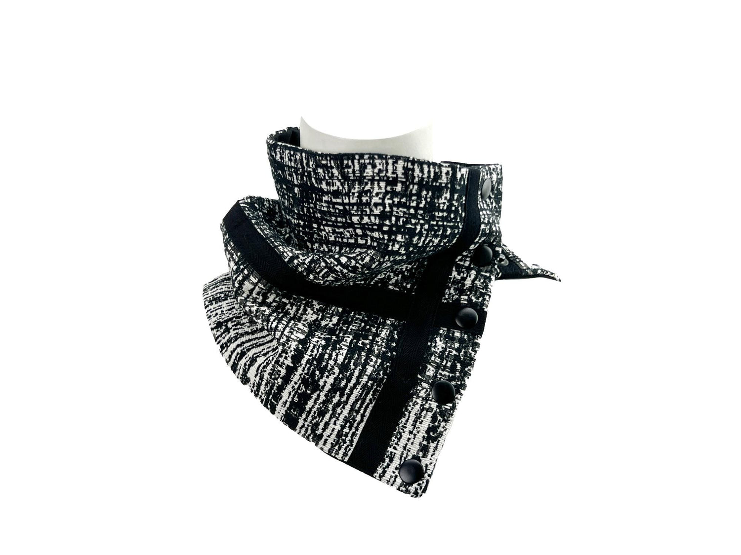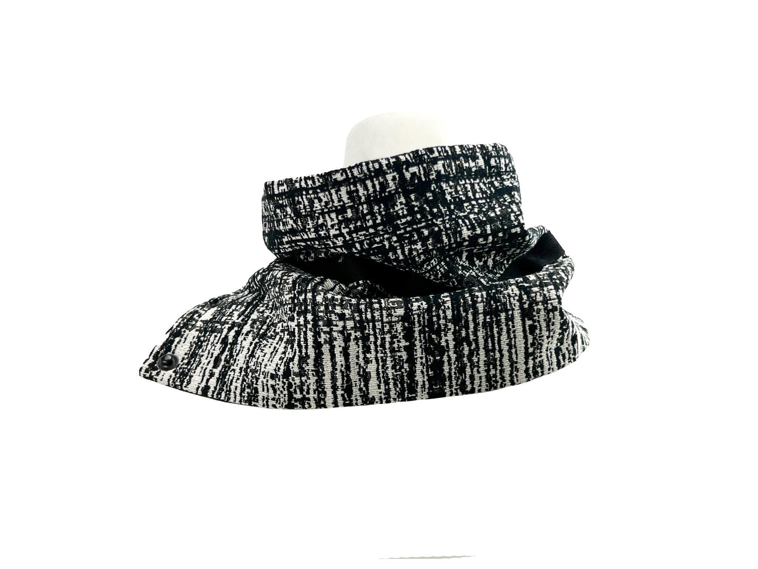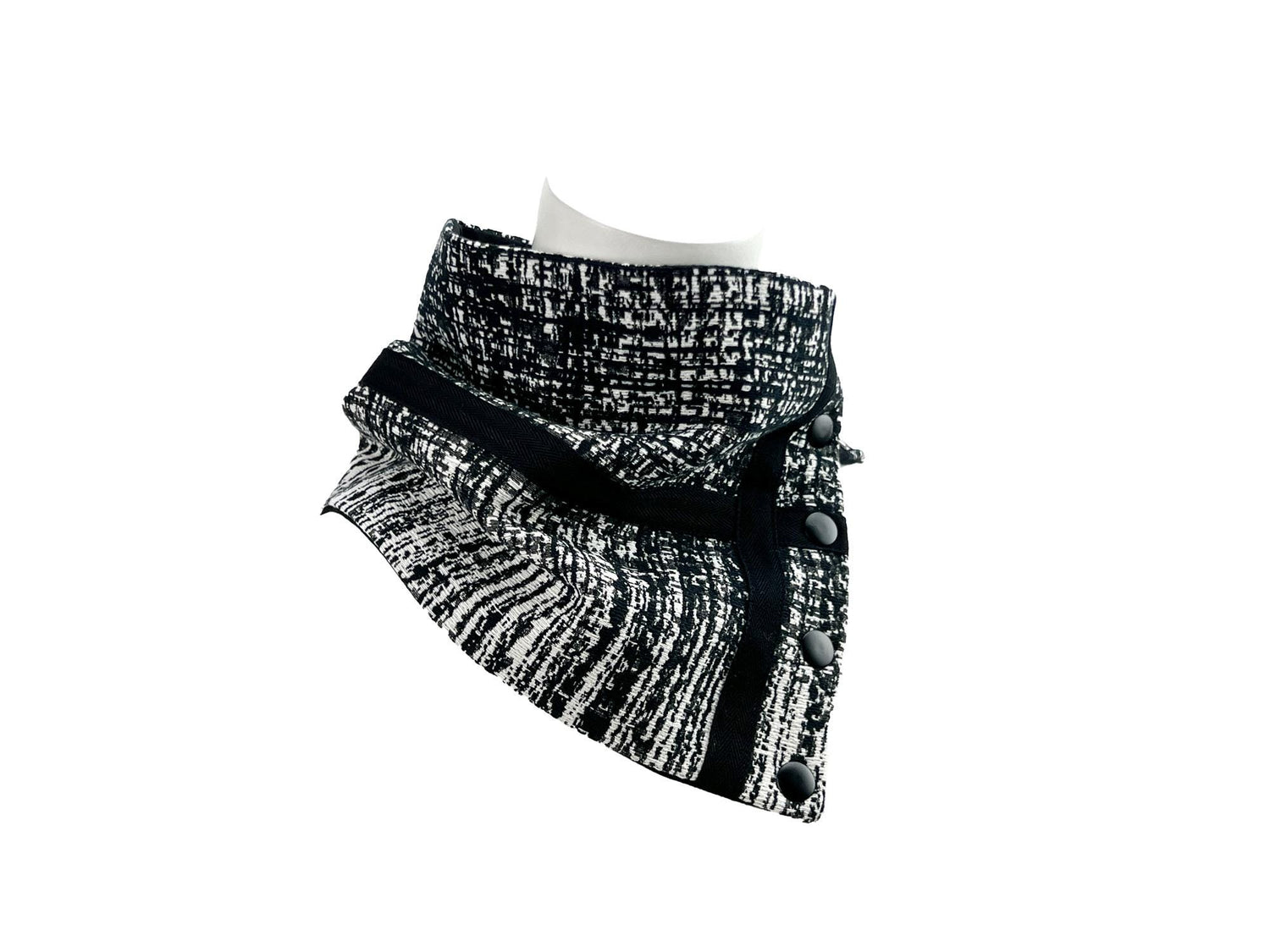 ブラック&クリームのグラフィック織りカウルスナップスカーフレット