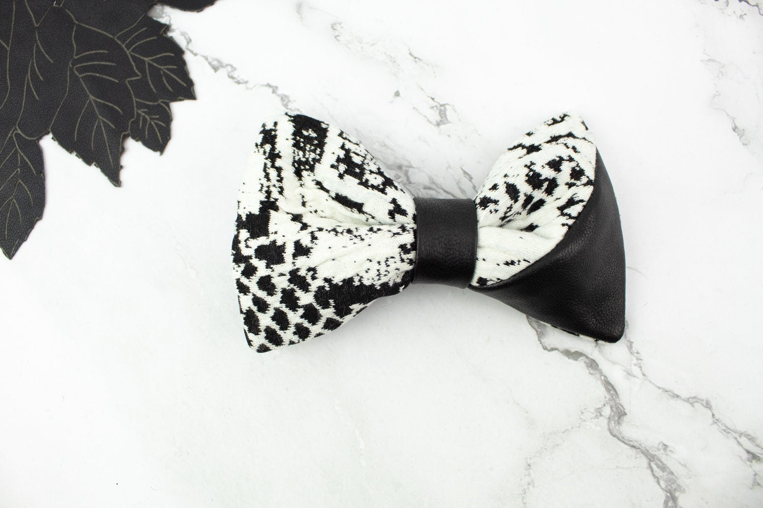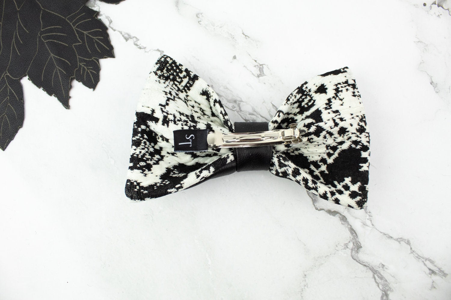黒とクリーム色の蛇皮模様のヘアバレッタリボン