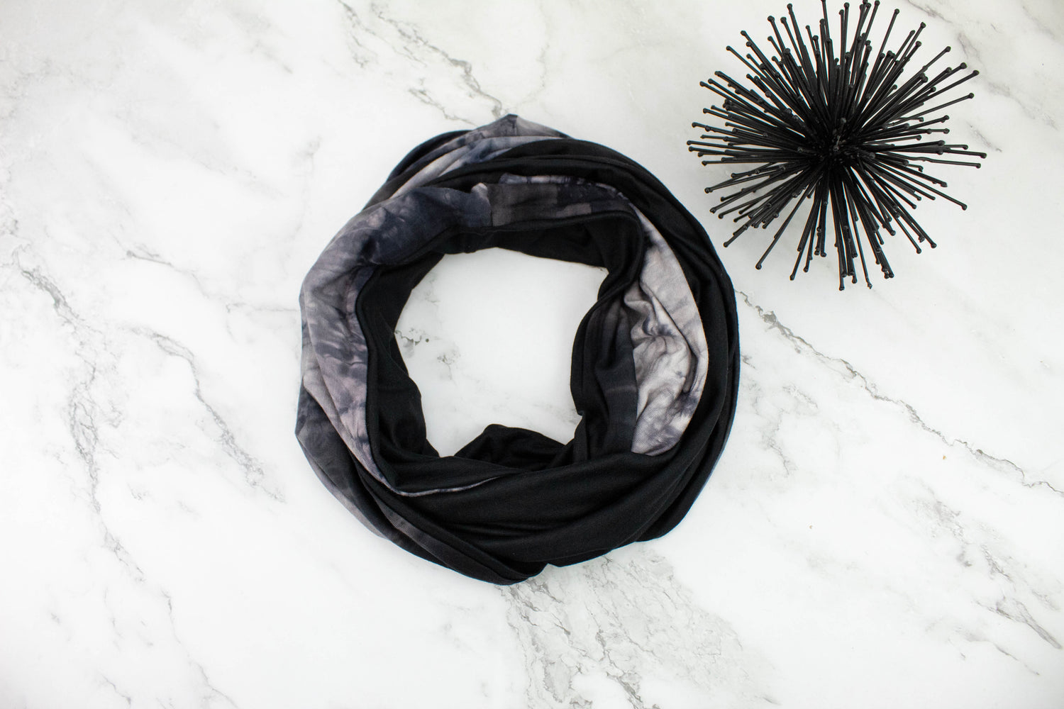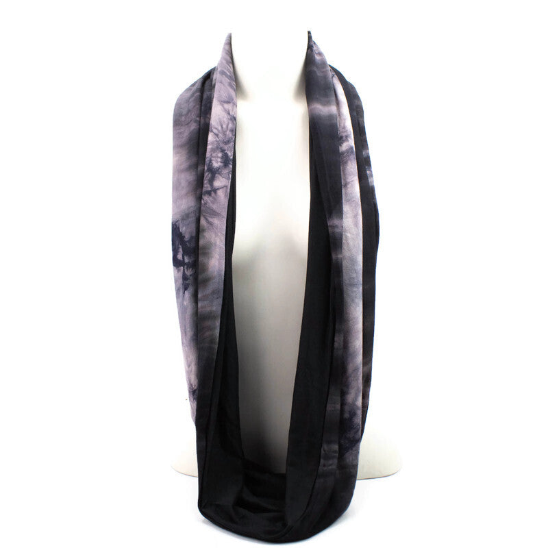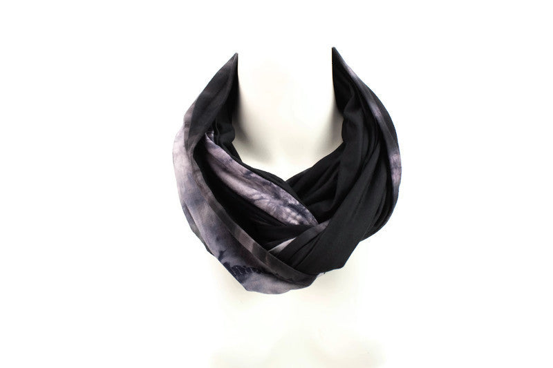 ブラックとナスのタイダイ染めニットインフィニティスカーフ