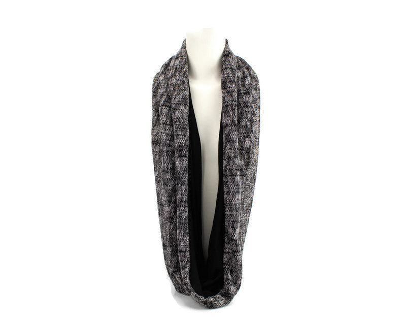 ブラックとオフホワイトのオープンウィーブインフィニティスカーフ
