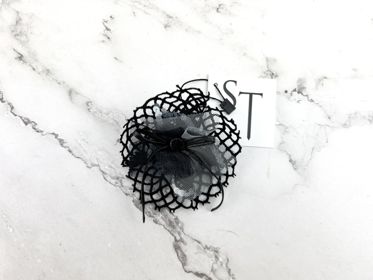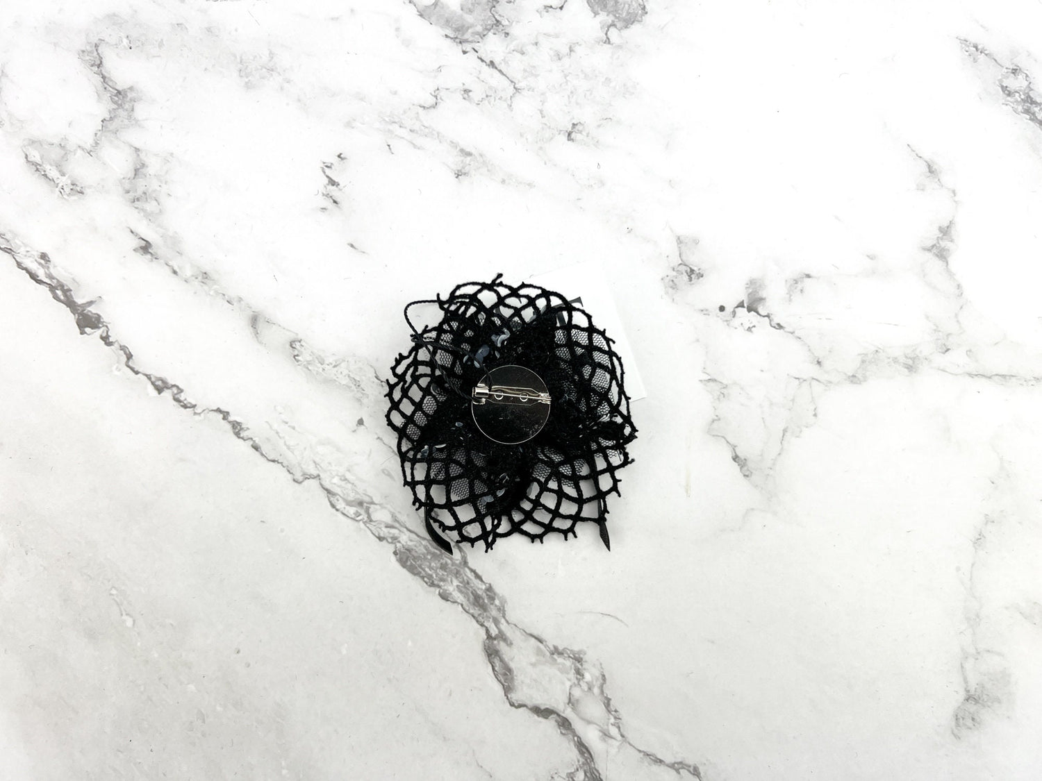 素材: フェイクレザー、メッシュ、ネット、スパンコールのトリム、フラットブローチピンバック