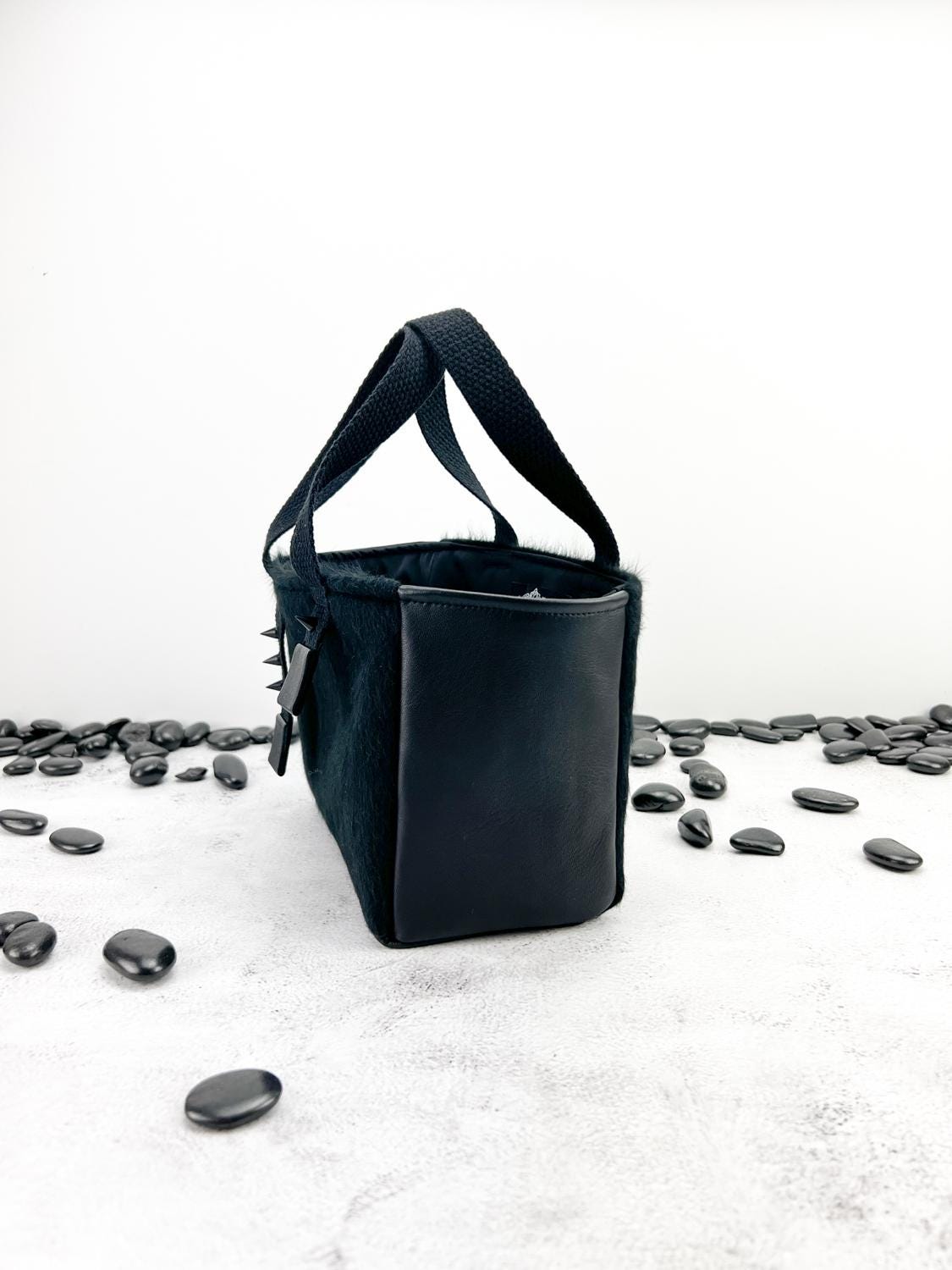 ブラック ブラッシュドウール&ラムスキンパネル ミニトートバッグ BAGG00086