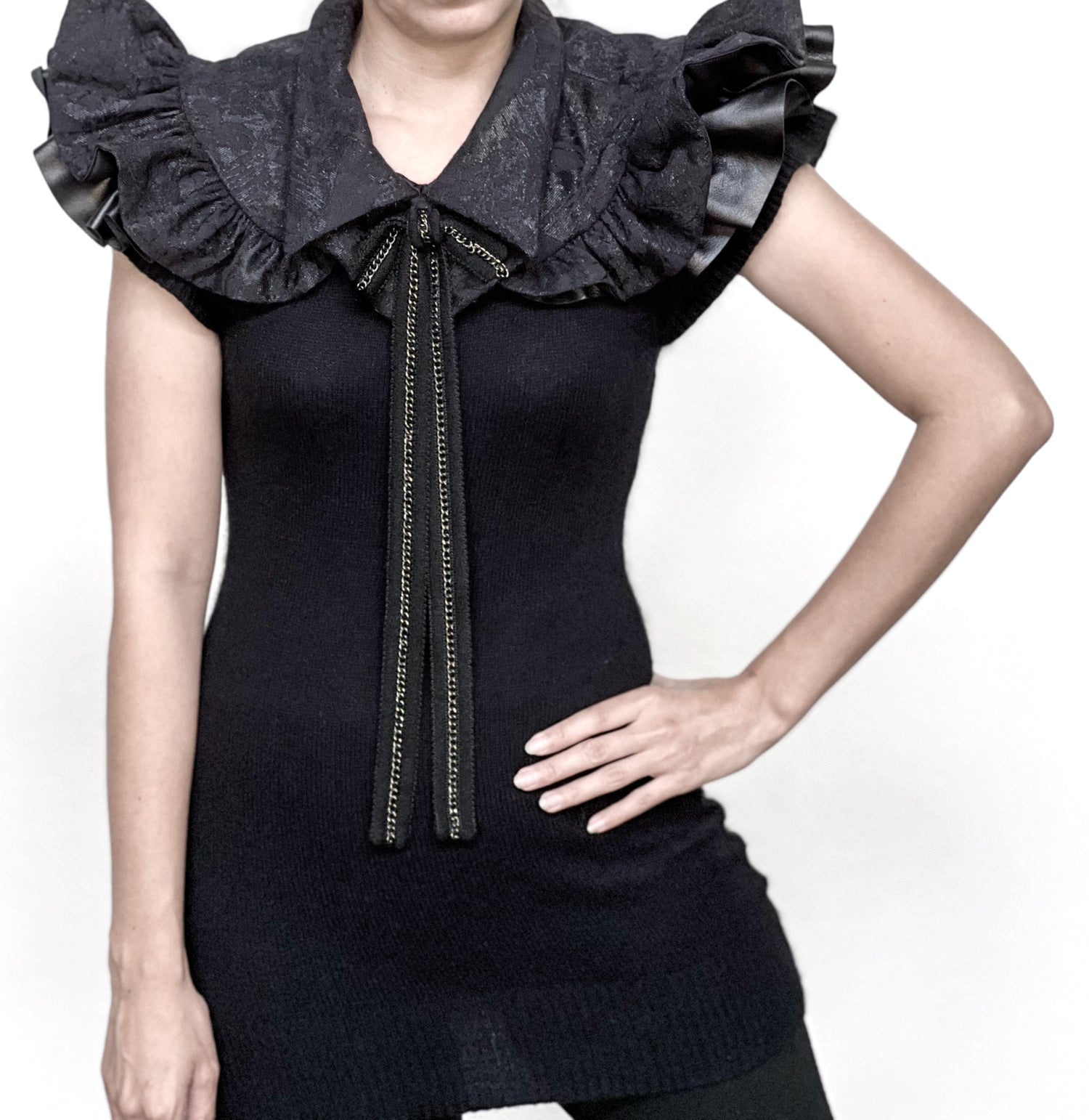ブラックメタリックダマスクチェーンボウタイネックカラー