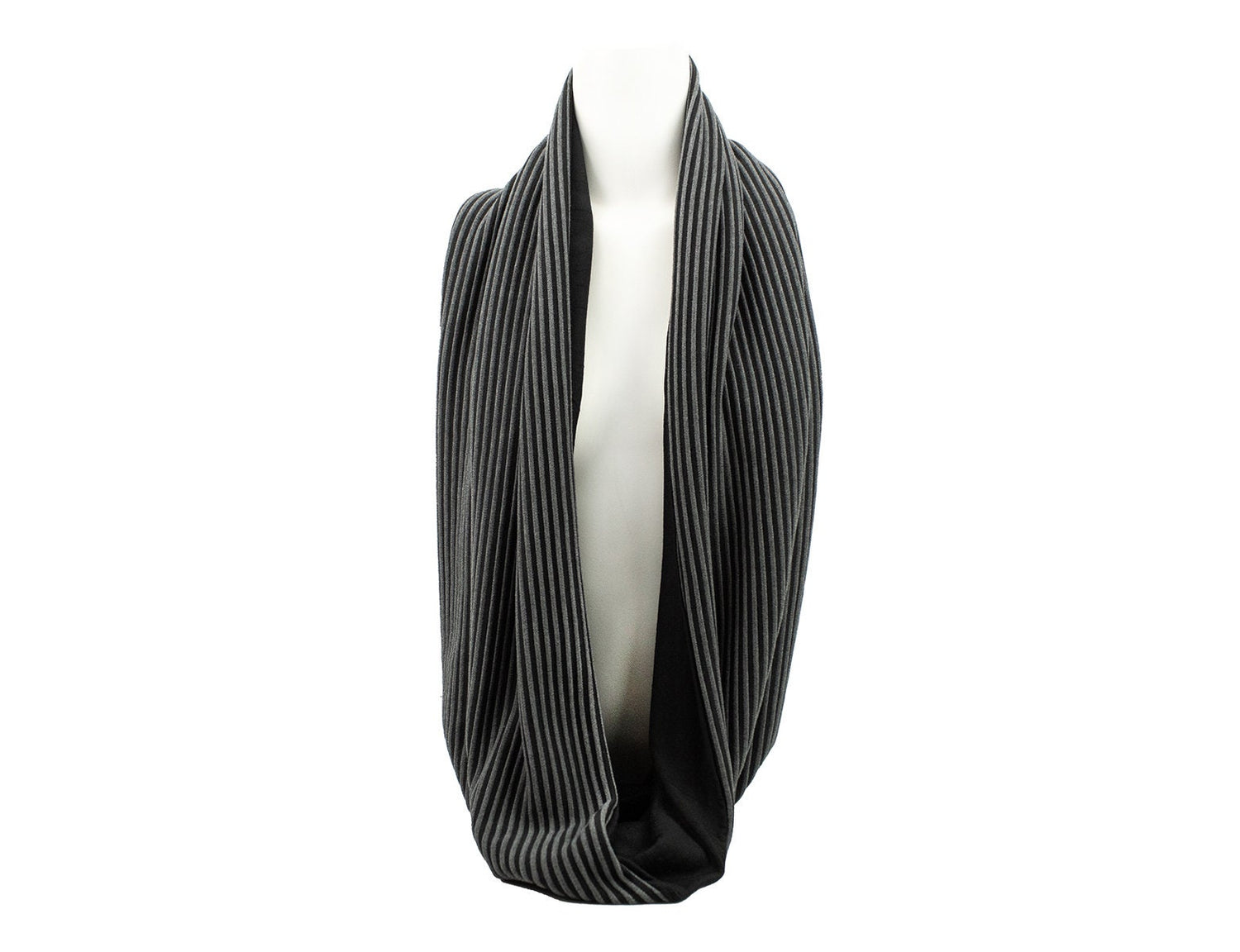 グレーとブラックのストライプ柄オットマンニットインフィニティスカーフ