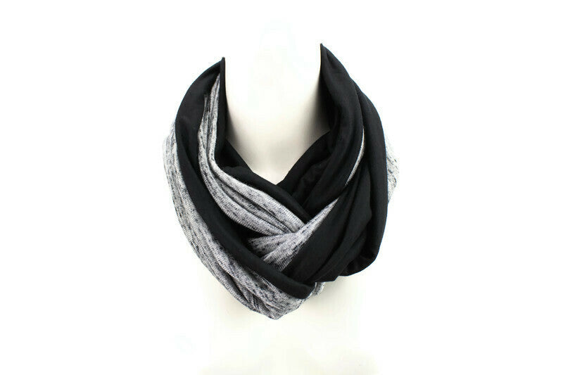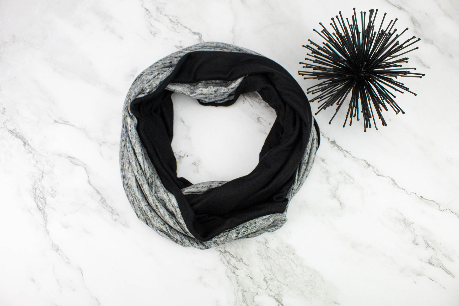 ヘザーグレーとブラックのニットインフィニティスカーフ