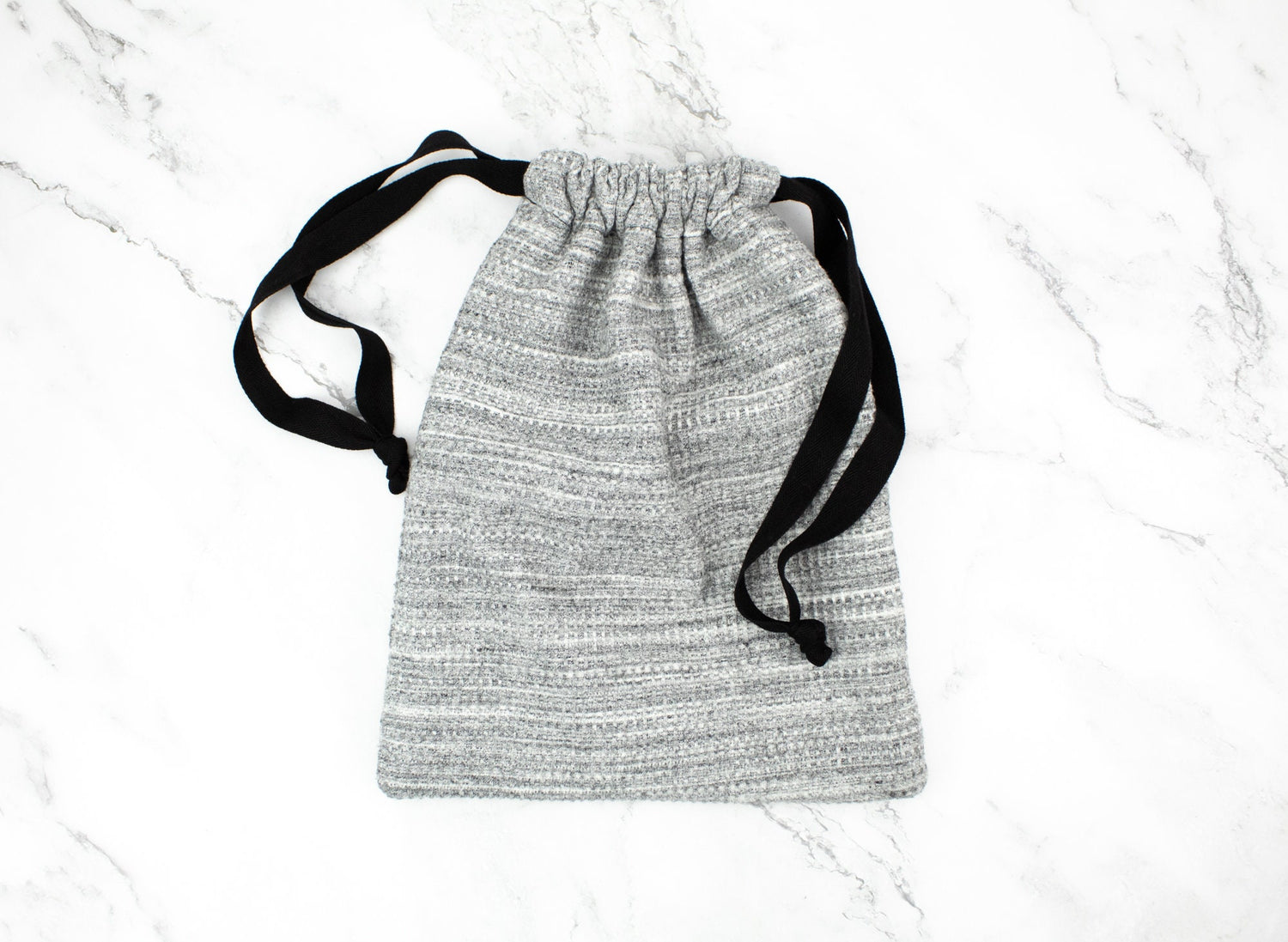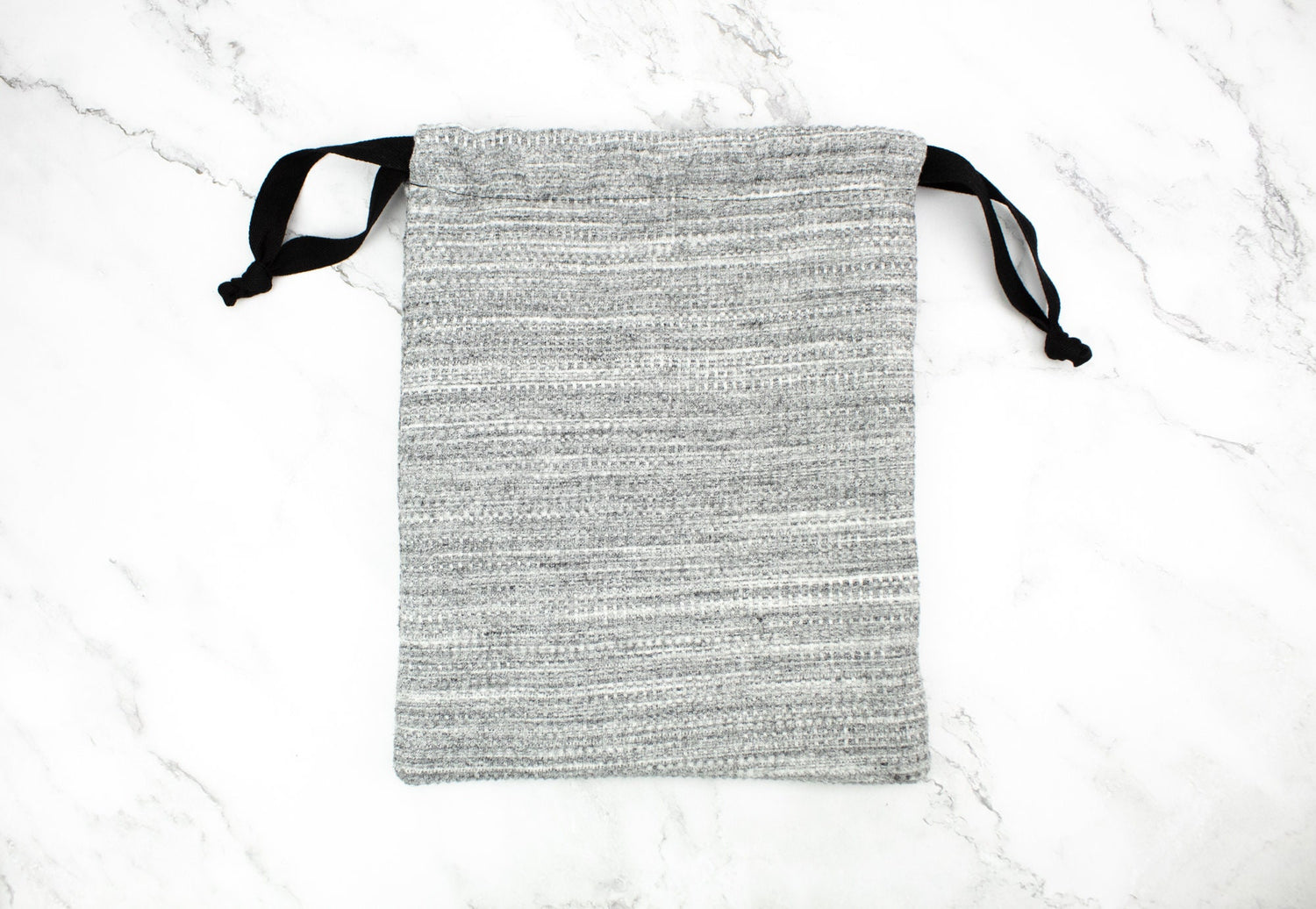 ヘザーグレーのワッフルニットドローストリングバッグ
