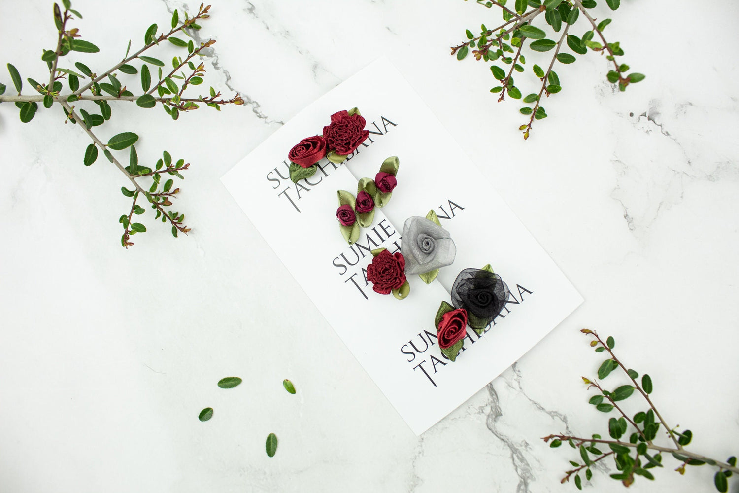 ミニフローラルヘアクリップ 4個セット レッド HCL00068