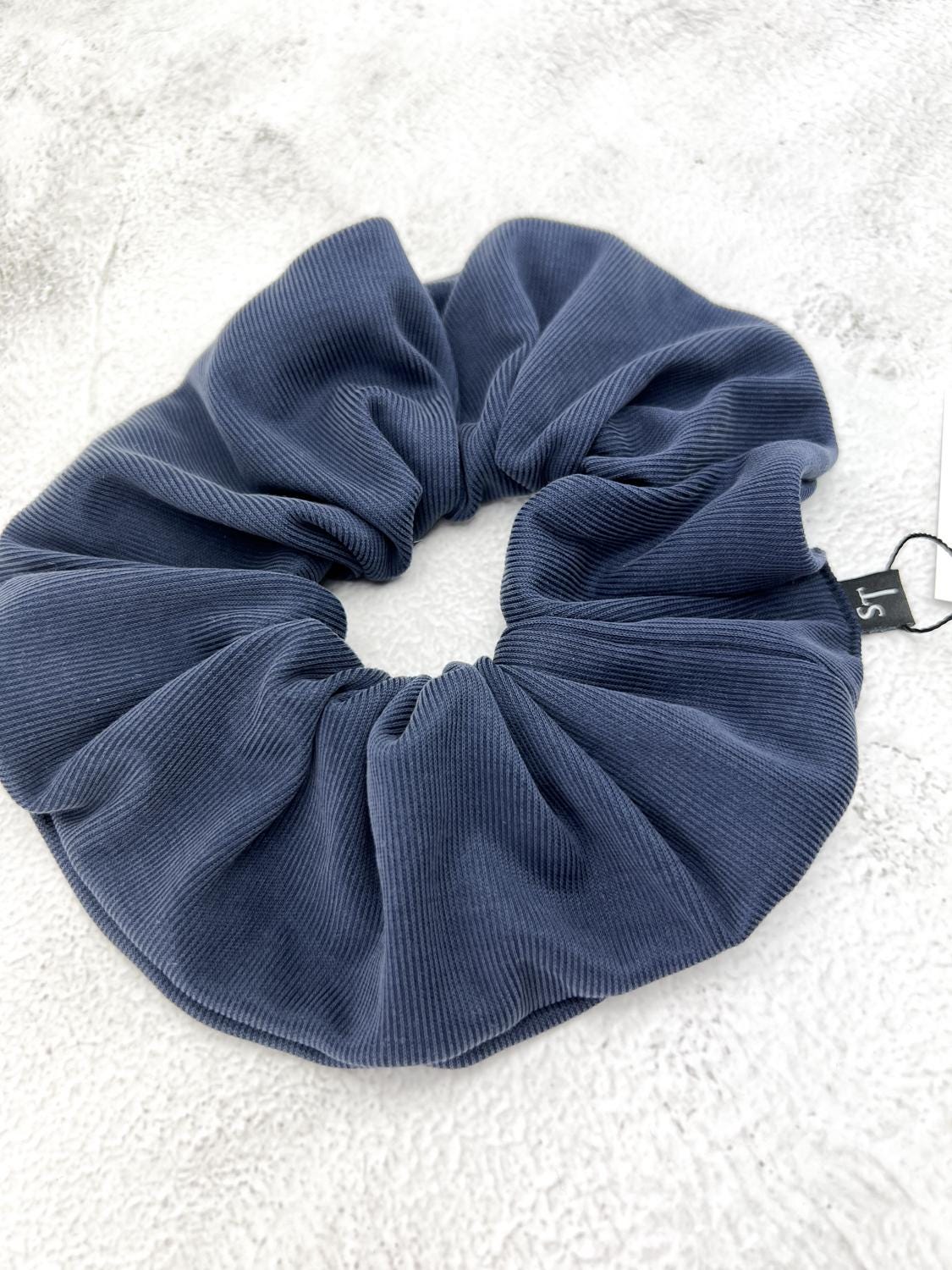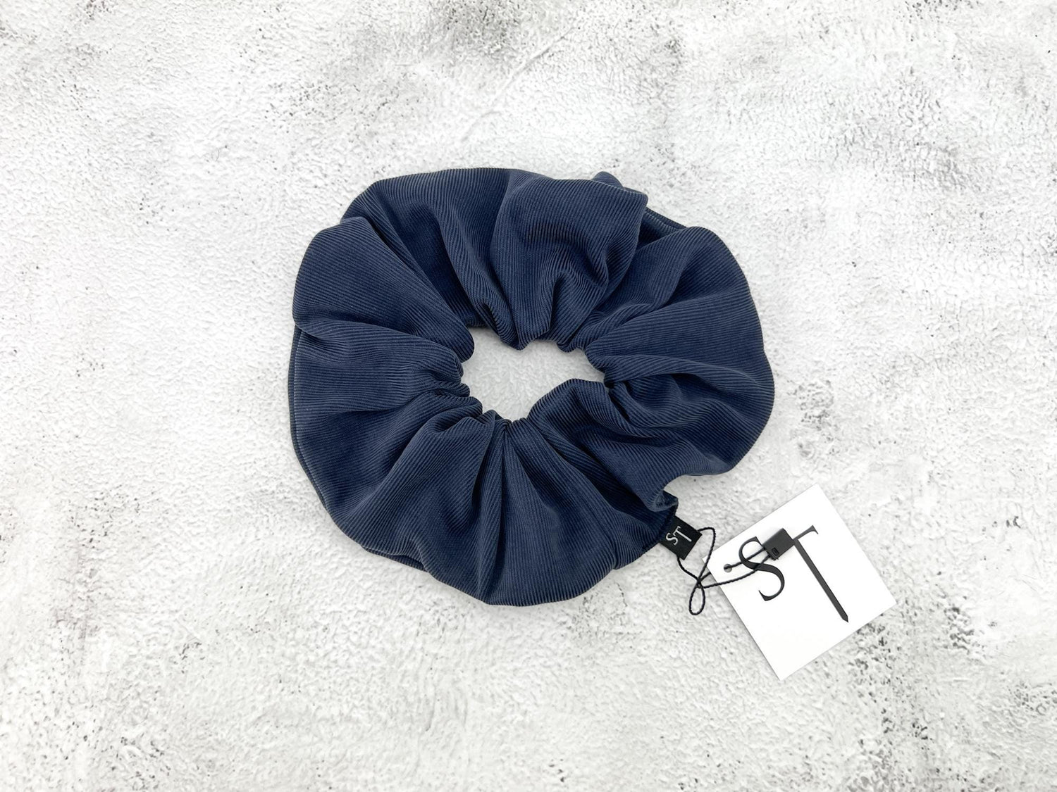 落ち着いたブルーのリブニット特大ヘアシュシュ SCR00052