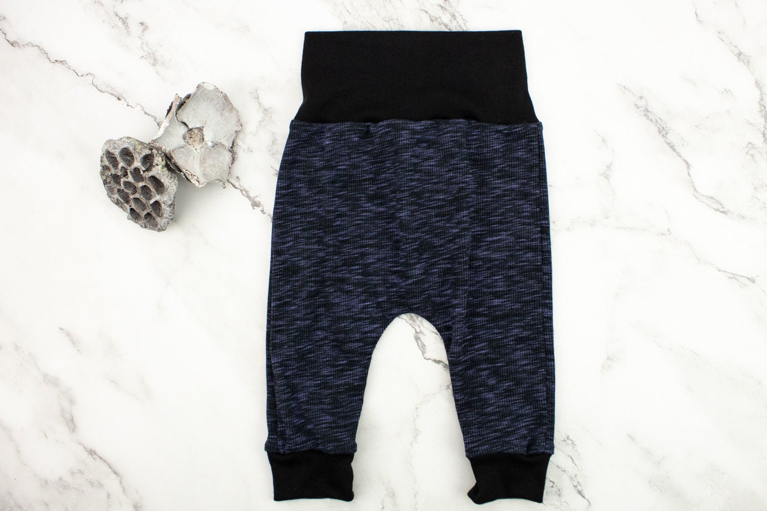 幅広ブラックバンド付きパープルリブニットハーレムパンツ 3~6ヶ月