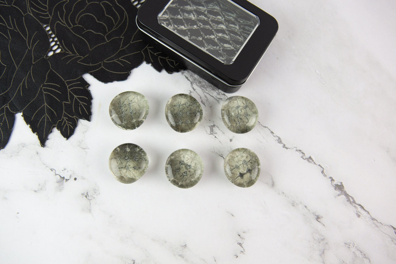 円形ドーム型のガラスマグネット6個セットです。ガラスの裏側は布地です。