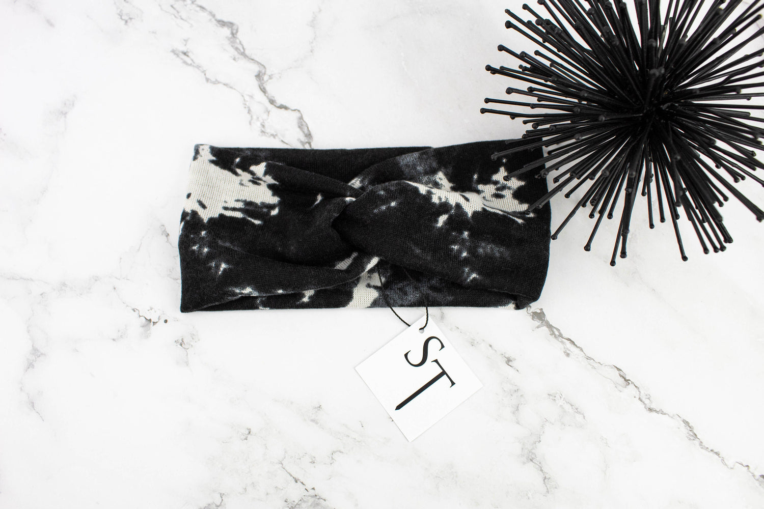 Black and Cream Tie Dye Sweater Knit Headband