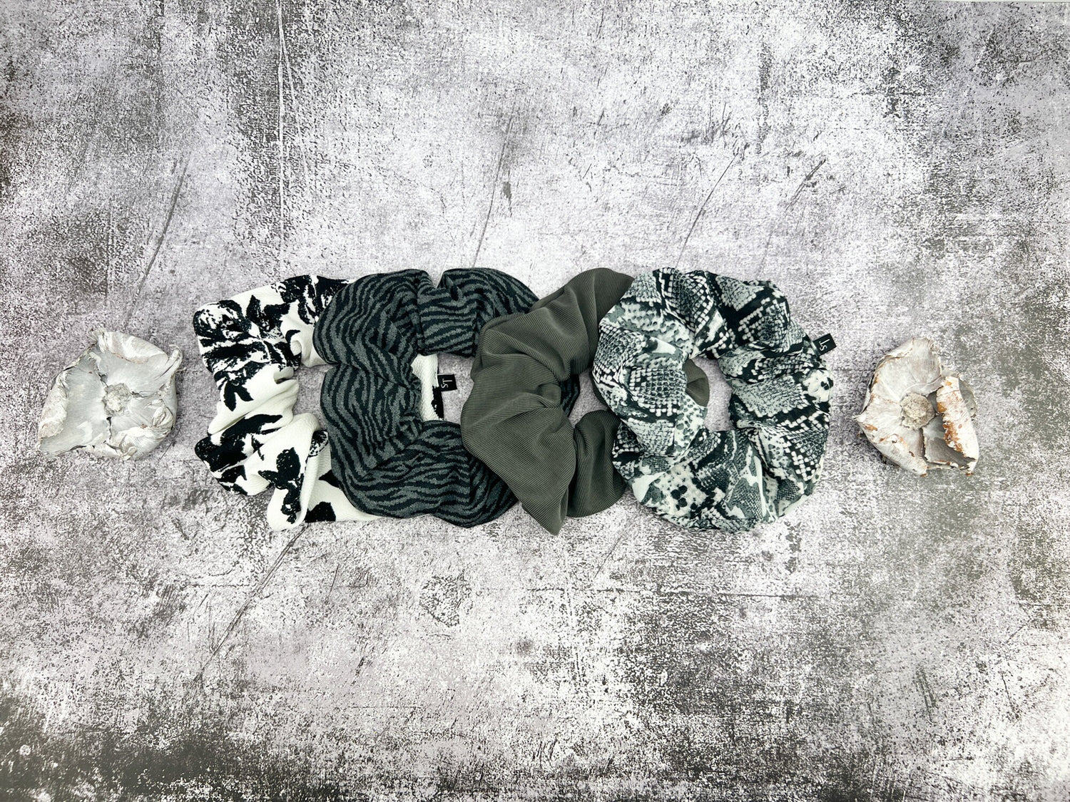 Black and White Floral Knit Extra Large Hair Scrunchie SCR00037