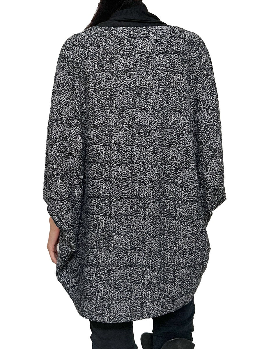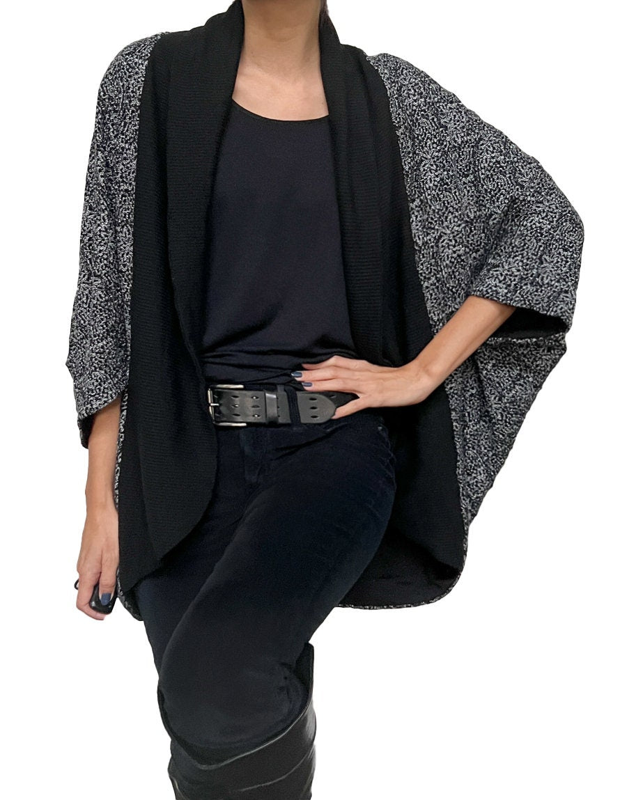 Black and White Lace Oversized Cocoon Open Sweater Jacket