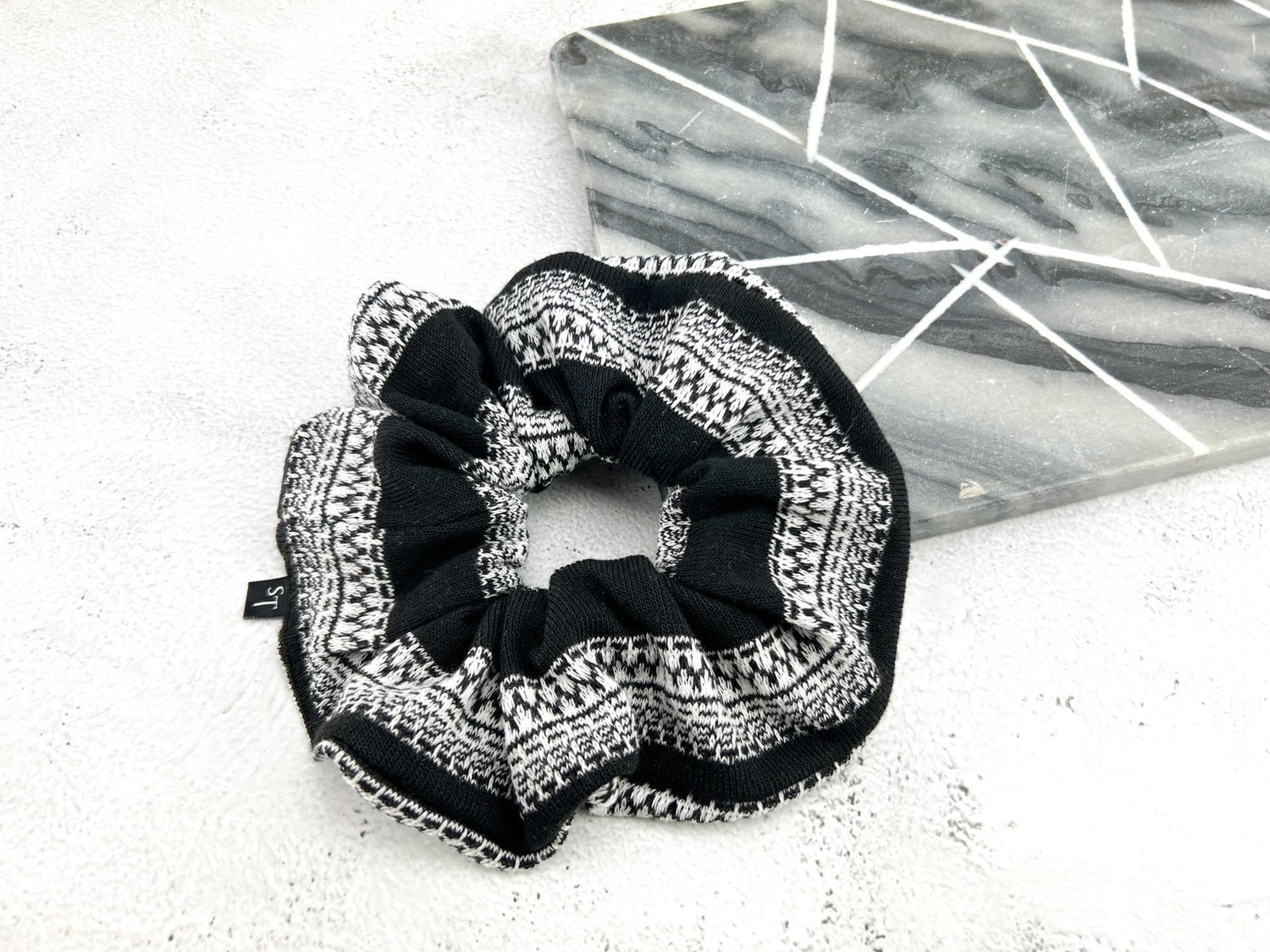 Black and White Sweater Stripe Knit Extra Large Hair Scrunchie SCR00041