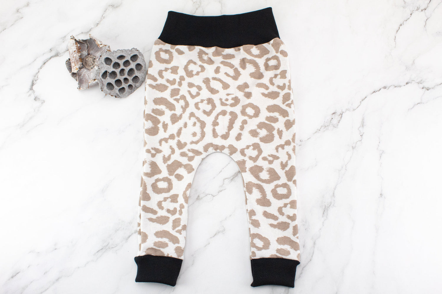 Brown Leopard Knit Harem Pants with Wide Black Band 12-18 months