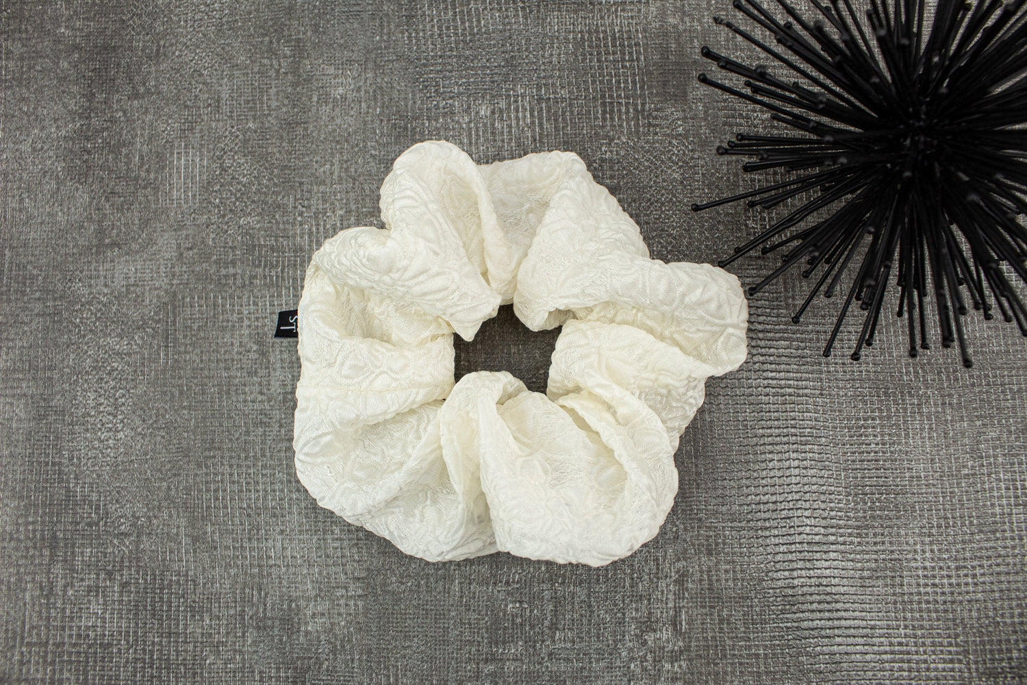 Complete your wedding look with this stunning embossed silk organza and satin floral wedding extra large scrunchie. It's a rare beauty!