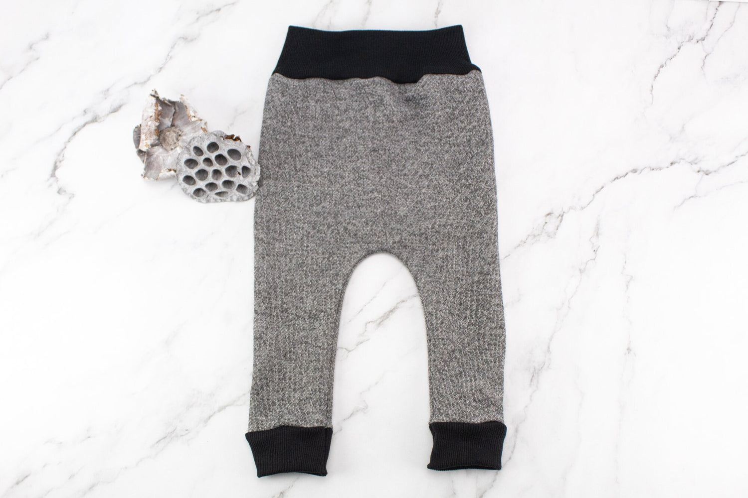Heather Gray Brushed French Terry Knit Harem Pants with Wide Black Band 12-18 months