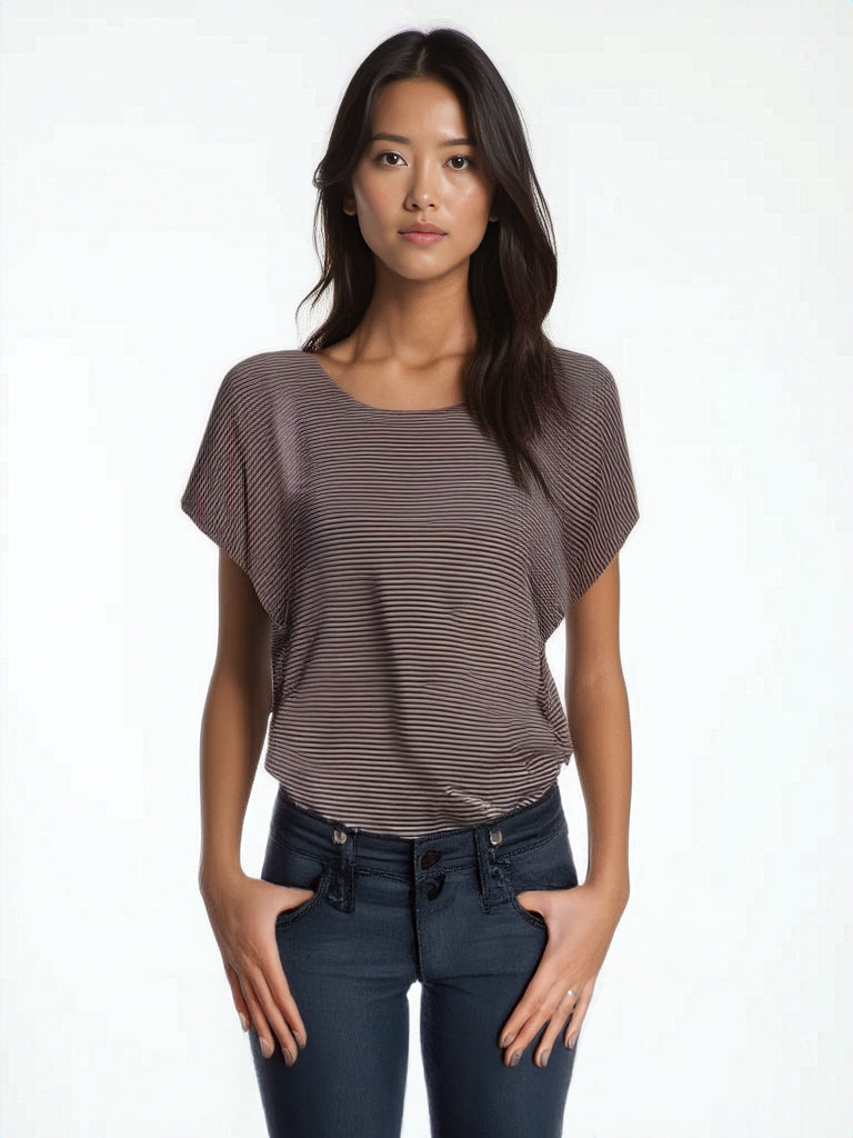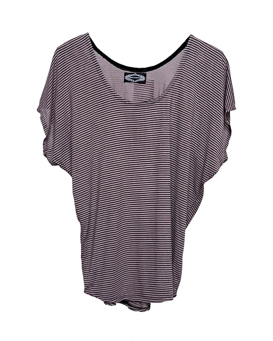 Mauve and Black Narrow Stripe Burnout Knit Dolman Top