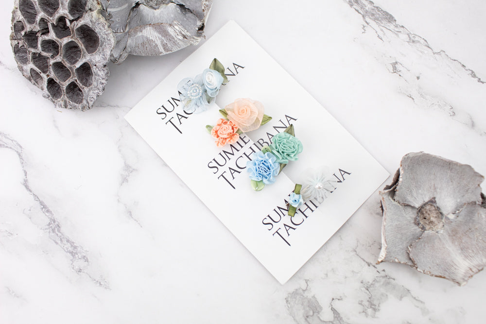 Mini Floral Hair Clip Set of 4 Blue Orange and Mint