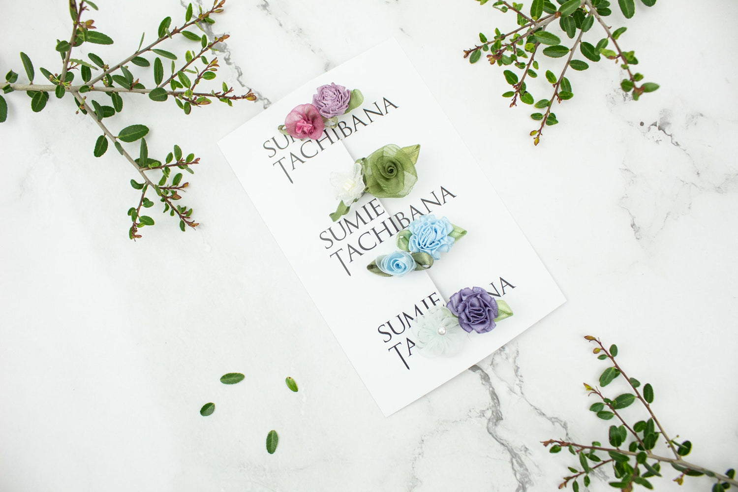 blush pink, lavender, green, off white, light blue, purple, silver (alligator clip)