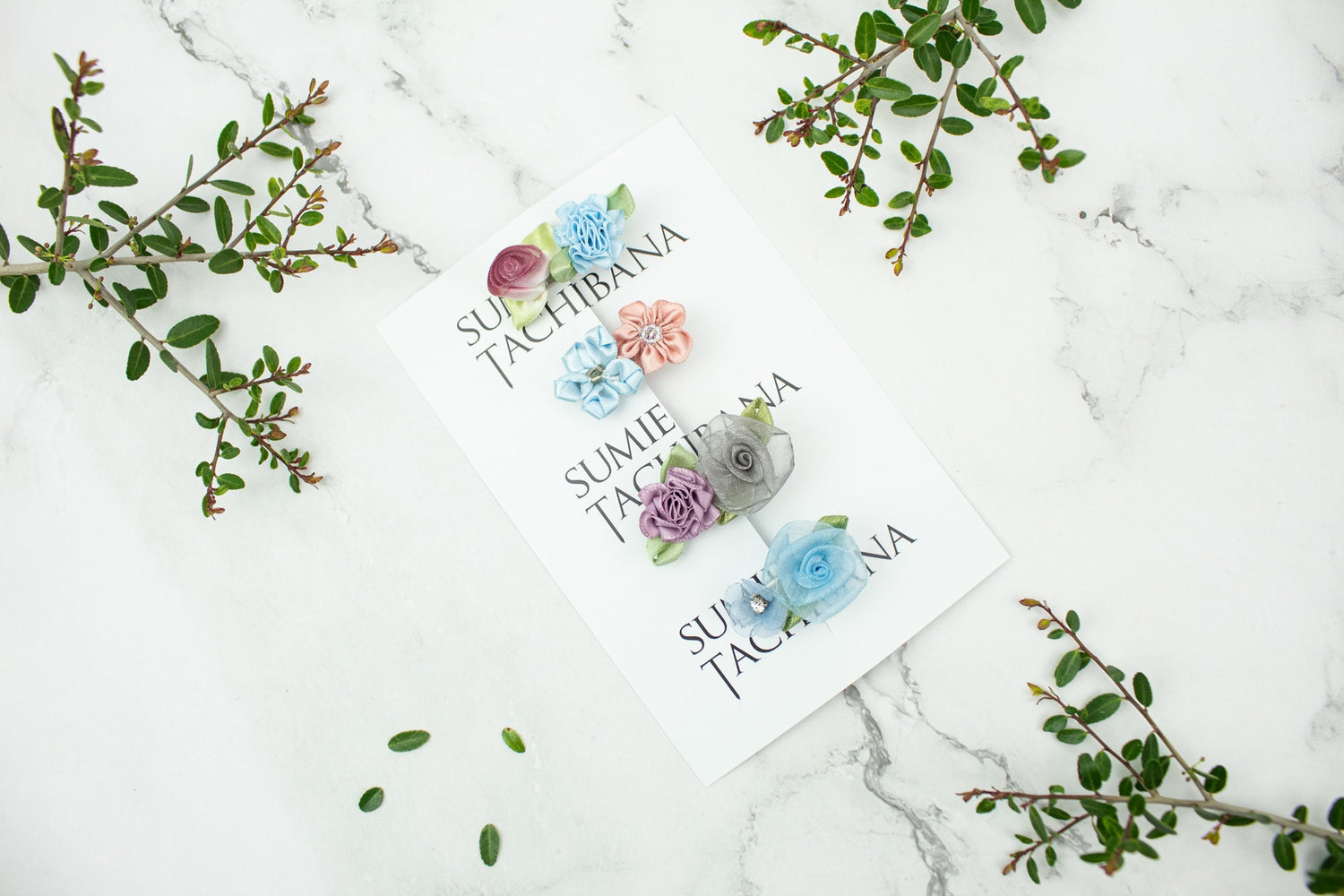 Mini Floral Hair Clip Set of 4 Blush Light Blue Lavender