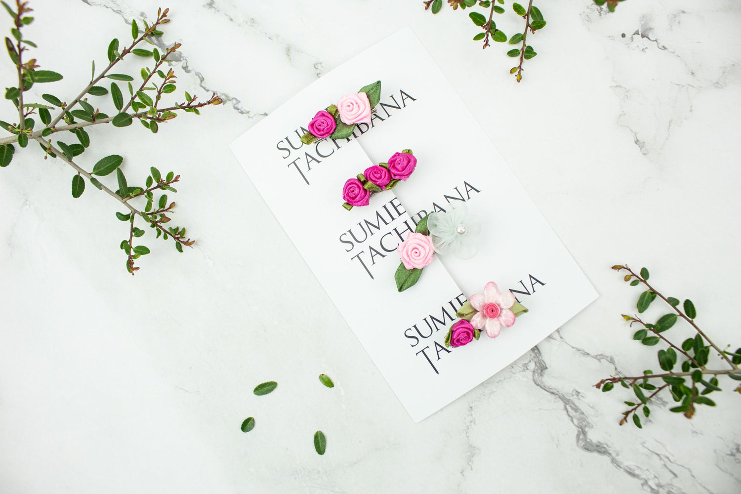 Mini Floral Hair Clip Set of 4 Bright and Light Pink