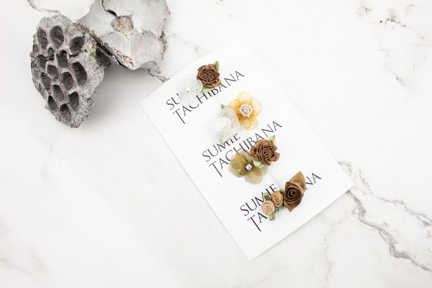 Mini Floral Hair Clip Set of 4 Gold and Brown