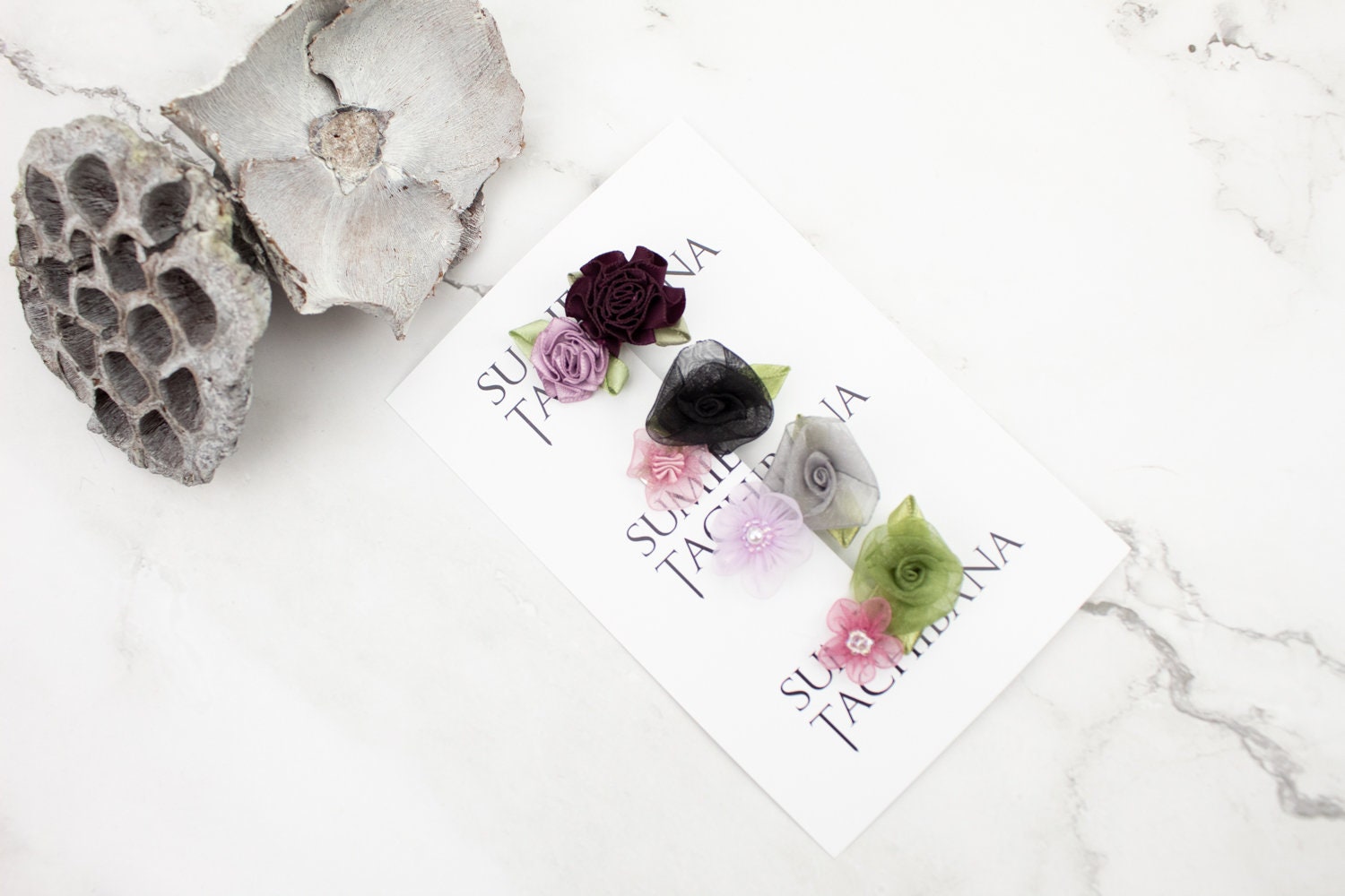 Mini Floral Hair Clip Set of 4 Lavender Burgundy Mauve