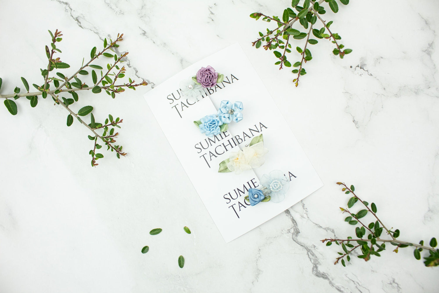 Mini Floral Hair Clip Set of 4 Lavender Light Blue Cream