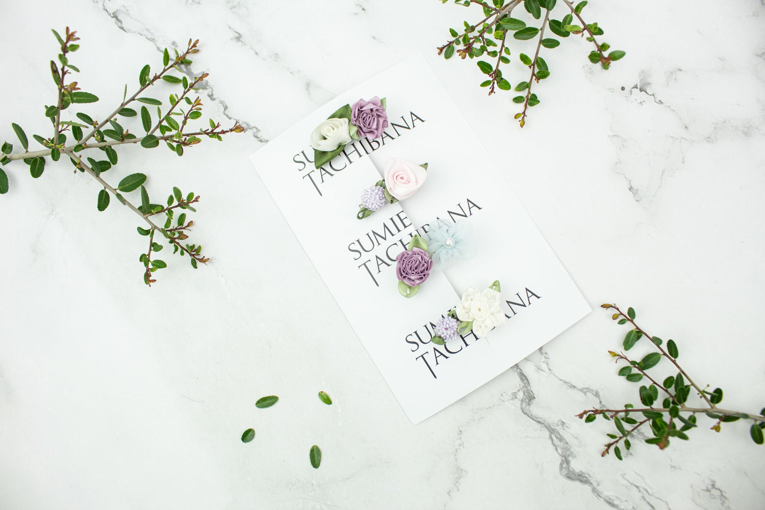 Mini Floral Hair Clip Set of 4 Lavender light Pink