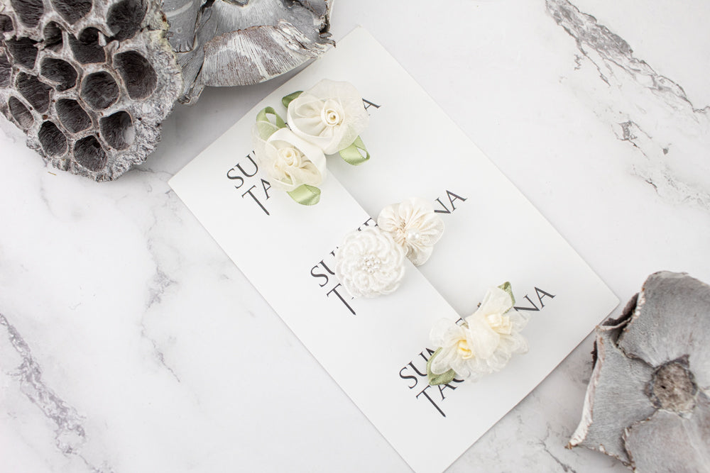 This is a set of three super cute mini hair clips to embellish small strands of your hair or your little one's hair.